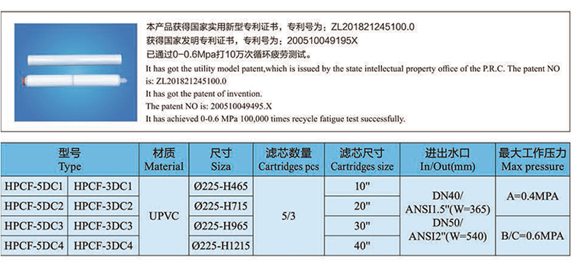 3.The distribution system of HPCF filters is distributed from bottom to top. Water is well-proportioned with small strike to cartridges and air is easy to be discharged.