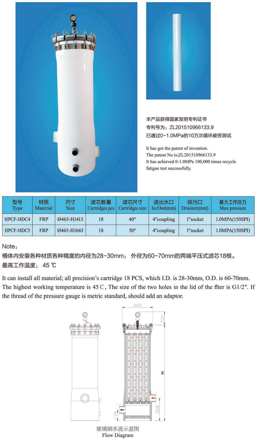 - 6.HPCF filter is corrosion resistant, It can be used in SS none- replace field, and seawater treatment field